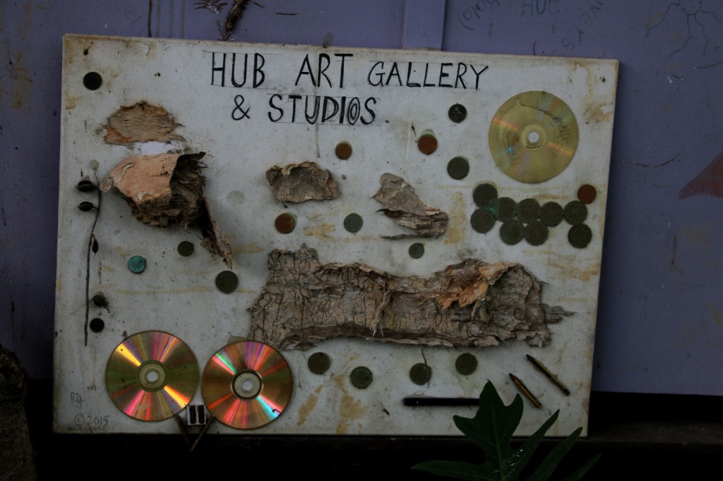 Magic Seeds from the Million-dollar Boomerang Tree (photo by Rom Chakravarti)The Million-dollar Boomerang Tree in flowerHUN HQ entranceManorina melanocephala (‘Noisy miner’) sketch by Rom ChakravartiHUB Art Gallery and Studios (photo and art by Rom Chakravarti)