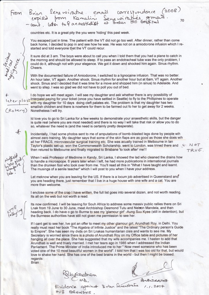 I have evidence also that Brian Senewiratne orchestrated the murders of: