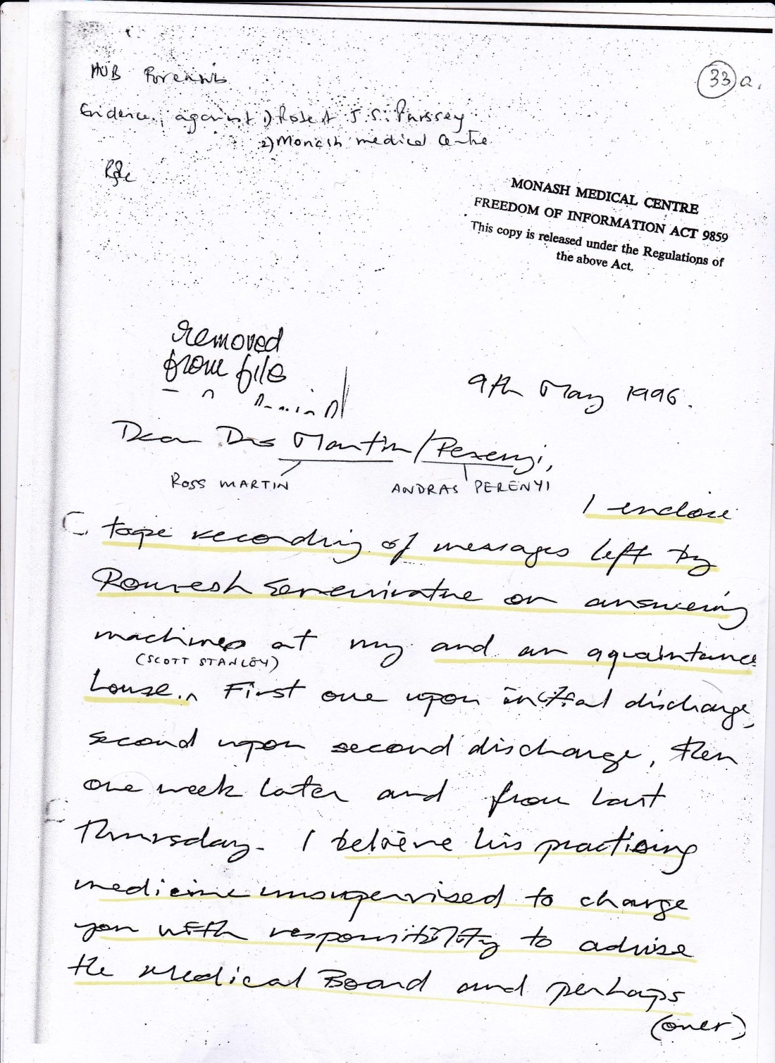 On 20th November 1995 Dr Robinson wrote a report to the Medical Board of Victoria saying: